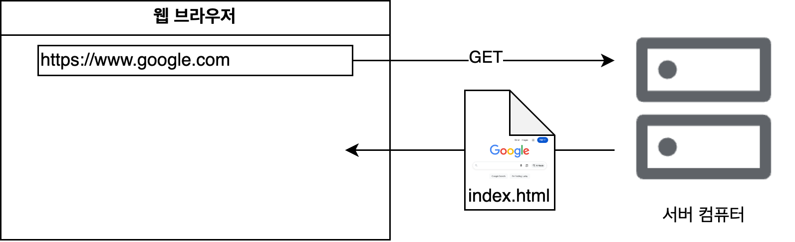 초창기 HTTP의 주된 용도는 사용자가 웹 브라우저에 주소를 입력하면 웹 브라우저는 목적지 서버에게 HTML 콘텐츠를 요청하고 서버가 보내준 HTML 콘텐츠를 화면에 그려주는 형태였습니다.